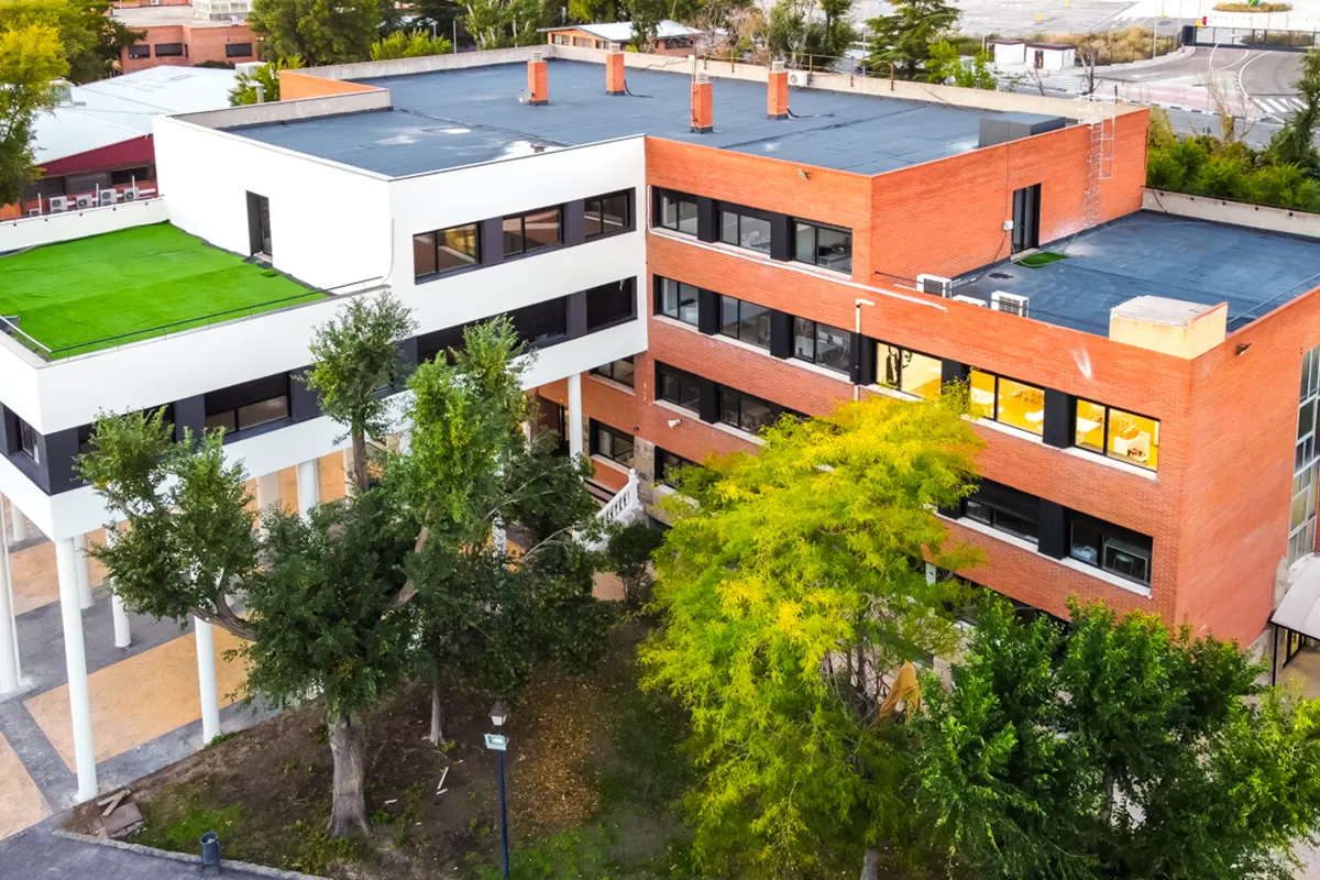 Más de 45.000 m² de espacios verdes. Aulas temáticas con nombre propio: Darwin (Ciencias), Goya (Arte), Shakespeare (Inglés), Ada Lovelace (Tecnología).